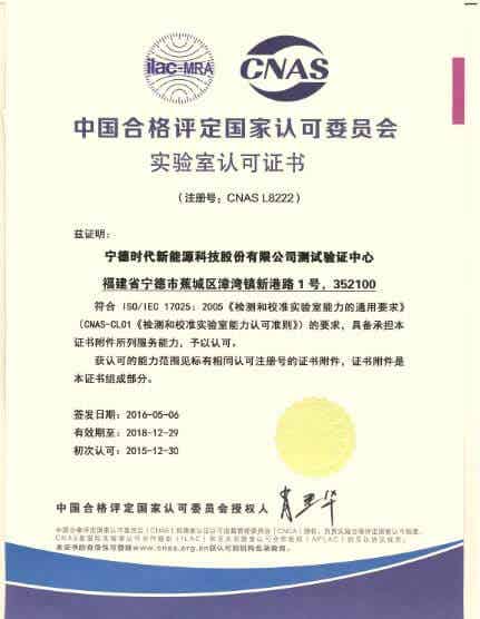 上圖展示的就是寧德時代新能源測試驗證中心(CATL-TVC)通過CNAS認可的證書,這標志著寧德時代新能源測試驗證中心的綜合能力達到了業界頂尖水平,一舉躋身國家級實驗室的行列,可以實現“一次檢測、全球認可”的目標。為推動產業的發展、轉型升級、創新起著積極的重要作用。