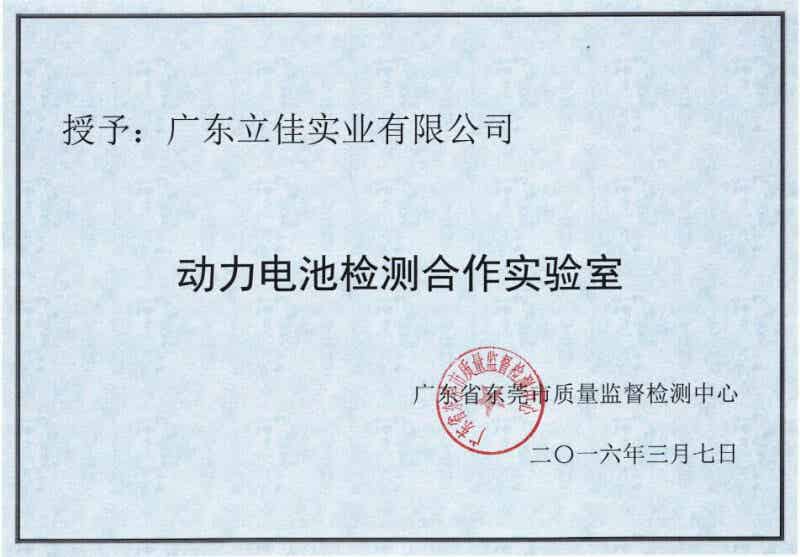 東莞質檢授予立佳“動力電池檢測合作實驗室”“可靠性檢測檢測合作實驗室”榮譽