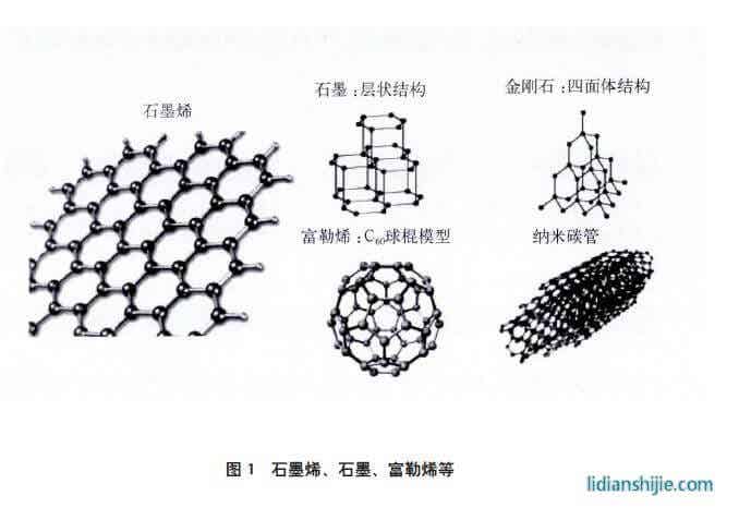 石墨烯是科學(xué)家最早發(fā)現(xiàn)的一種具有穩(wěn)定二維結(jié)構(gòu)碳的材料,是一種理想的二維碳質(zhì)晶體。理想的石墨烯結(jié)構(gòu)是平面六邊形點(diǎn)陣,其基本結(jié)構(gòu)單元為有機(jī)材料中最穩(wěn)定的苯六元環(huán),它是一種由碳原子以s p2雜化軌道組成六角型呈蜂巢晶格的平面狀薄膜。石墨烯是碳的多種形態(tài)中的基本結(jié)構(gòu)單元,單層石墨烯只有一個(gè)碳原子的厚度,即0.335nm,碳的其他存在形態(tài)為碳納米管、石墨、富勒烯、金剛石(圖1)。石墨烯是已知自然界穩(wěn)定存在的最薄的材料,并且具有極大的比表面積、超高的導(dǎo)熱率、超強(qiáng)的導(dǎo)電性和強(qiáng)度等優(yōu)點(diǎn),因此其擁有良好的應(yīng)用和市場(chǎng)前景。