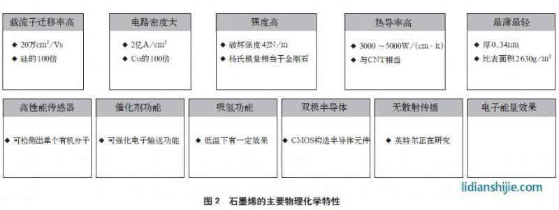 現(xiàn),2位教授共同在2010年獲得諾貝爾物理學(xué)獎(jiǎng)。在此背景下,石墨烯的眾多方向研究如火如荼的展開,并且迅速在全球范圍里掀起了石墨烯制備、石墨烯復(fù)合技術(shù)和材料、石墨烯下游產(chǎn)品等的研究熱潮。石墨烯材料超強(qiáng)的物理、化學(xué)和機(jī)械等主要特性如圖2所示。