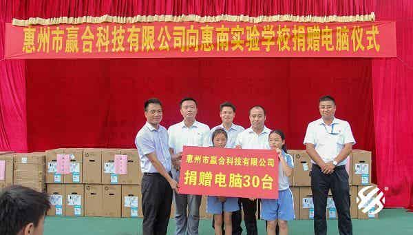 6月27日, 盡管驕陽似火,但是在惠南實(shí)驗(yàn)學(xué)校里吹起了一股充滿愛心的清風(fēng)。惠南高新技術(shù)產(chǎn)業(yè)園管委會(huì)、惠州市贏合科技有限公司在此舉行電腦捐贈(zèng)儀式,管委會(huì)領(lǐng)導(dǎo)及公司副總裁王振東、總裁辦主任柳小舟等受董事長(zhǎng)王維東先生的委托共同出席了儀式。