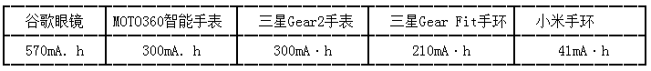調研機構Canalys給出的數據顯示:2013年下半年,全球有160萬臺健康腕帶和智能手表出售。中國IT研究中心(CNIT-Research)預計可穿戴設備2014年全球銷量總額將同比增長350%至2270萬臺,2017年銷量將突破1億臺,產品還是集中在健康腕帶和智能手表兩類。隨著可穿戴設備的流行和產品市場的深入,很多電池廠家也隨著市場的需要開發出了穿戴設備使用的鋰離子電池。考慮到電池重量要輕、體積要小、安全性要高及電池形狀和尺寸設計方面的問題,智能珂穿戴設備用鋰離子電池主要以聚合物鋰電池為主。以目前市場上流行的幾款只能可穿戴產品為例。