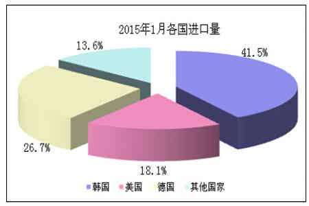 據(jù)1月份分國別進(jìn)口數(shù)據(jù)顯示,自韓國、美國、德國三國共進(jìn)口多晶硅8040噸,占總進(jìn)口量的86.4%,其中從韓國進(jìn)口量為3867噸,占總進(jìn)口量的41.5%;從美國進(jìn)口量為1683噸,占總進(jìn)口量的18.1%;從德國進(jìn)口量為2490噸,占總進(jìn)口量的26.7%;其他地區(qū)進(jìn)口量為1269噸,占總量的13.6%。
