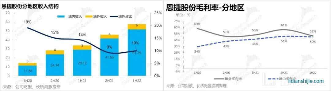 收入、利潤穩健如牛,而且背后所體現得公司在濕法隔膜上全球市占率、市場地位也是一貫的穩固。穩固的市占率和顯著超越電池產業鏈同行的毛利率,也讓它作為行業的龍頭,沒有去博弈和傳導漲價壓力,同時中國動力電池廠市占率強勢提升,也影響了它海外收入占比的結構性提升,這些因素都短期影響了毛利率提升的邏輯。