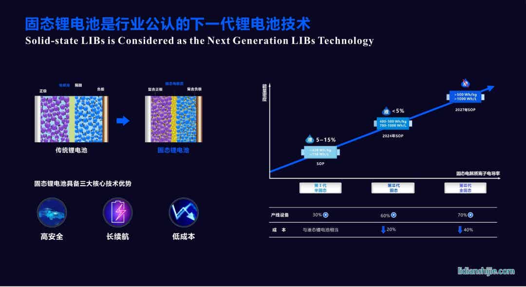 這里普及一下,依據(jù)電解質(zhì)分類(lèi),電池可細(xì)分為液態(tài)(25wt%)、半固態(tài)(5-10wt%)、準(zhǔn)固態(tài)(0-5wt%)和全固態(tài)(0wt%)四大類(lèi),其中半固態(tài)、準(zhǔn)固態(tài)和全固態(tài)三種,可以統(tǒng)稱(chēng)為固態(tài)電池。