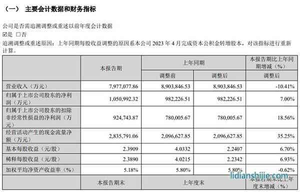 4月15日晚,寧德時代發(fā)布2024年第一季度報告。當期,寧德時代營業(yè)收入798億元,同比下降10.41%;歸母凈利潤105億元,同比增長7.00%;毛利率達26.42%,同比提高5.15個百分點。