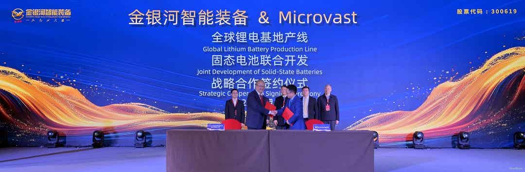 在科技大會上,金銀河與Microvast微宏集團簽訂“全球鋰電基地產線和固態電池聯合開發”戰略合作協議,雙方將展開深度合作,攜手共繪全球合作和固態電池開發的新編章。