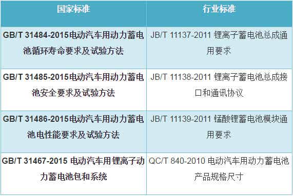 我國動力電池標準情況
