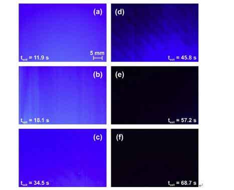 圖3 不同的干燥時間之后捕捉到的RGB圖像,干燥時間從(a)11.9s到(f)68.7s