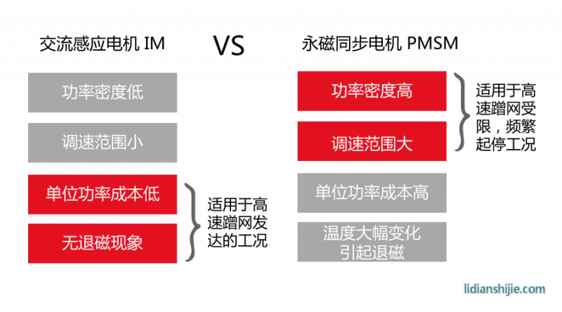 車(chē)用電機(jī)通常分為永磁同步電機(jī)和異步電機(jī)兩種。這兩種電機(jī)各有好處。永磁同步電機(jī)顧名思義它的磁場(chǎng)采用的是永磁鐵。也就是我們小時(shí)候玩過(guò)的磁鐵。由于磁鐵本身具備永久的磁性,所以我們就利用這種磁性來(lái)推動(dòng)轉(zhuǎn)子運(yùn)動(dòng)。它的好處就是能量效率比較高,消耗電能比較少,因?yàn)楫a(chǎn)生磁力的過(guò)程并沒(méi)有消耗任何電能,但缺點(diǎn)就是由于永磁體的磁場(chǎng)有限,或者說(shuō)不能無(wú)限制提高,所以它的最大功率會(huì)受一定的影響。
